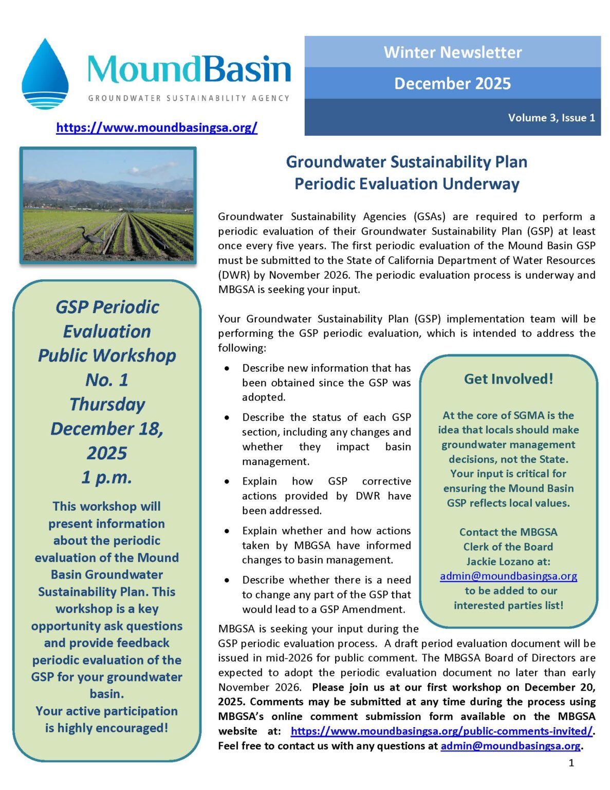 Presentations from the GSP Workshop, held on December 18, 2025, are available under Groundwater Sustainability Plan.